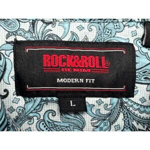 Rock & Roll Denim Youth Boys Modern Fit Blue Paisley Pearl Snap Shirt - Size L