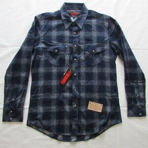 Rock & Roll Men's LG Long Sleeve Corduroy Plaid Snap Western Shirt Blue