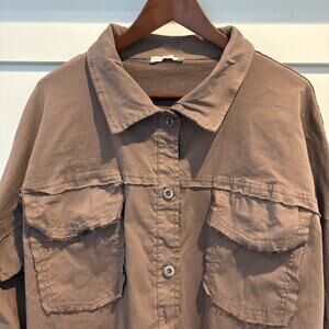 Rock & Roll Shirt Womens XL Brown Shacket Oversized Frayed Hem Made in Italy