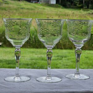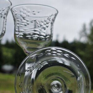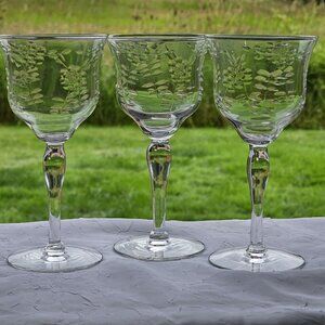 Rock Sharpe Floral Handcut Cocktail Glasses 5.75" set/3 midcentury dinner party