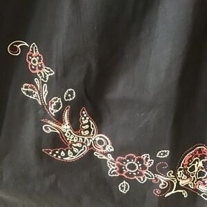 The design is painted, it looks like embroidery. I ship same or next business day from a nonsmoking, pet free home. EUC - no signs of wear.