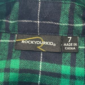 Rock Your Kid Boys Green Navy Plaid Flannel Shirt Sz 7 “Come As You Are” Snaps