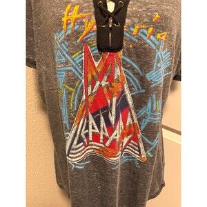 Rock and Republic Def Leppard soft vintage style lace up front t-shirt XL EUC