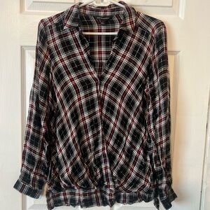 Rock and Republic Plaid Drape Front Blouse. Size Medium