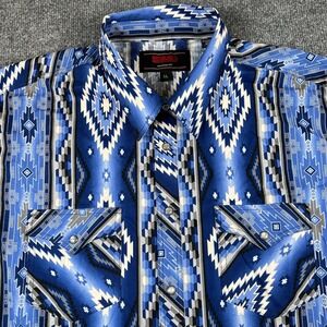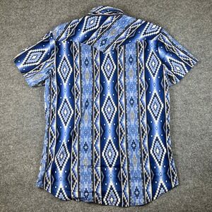 Rock and Roll Denim Shirt Mens XL Blue Aztec Pearl Snap Western Short Sleeve