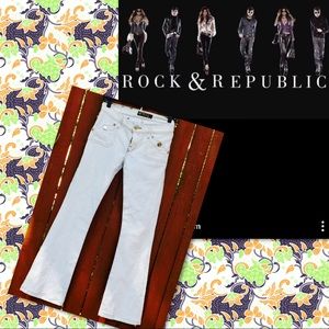 Really cute detailing to these jeans! Barely ever worn and in great condition. 2 Adorable pockets in the front of jeans. Also pockets in the back that say rock and republic.length about 39in. Cute silver button detailing as well!. Waist:about 14in and a stretch to it. Questions? Please don't hesitate to ask, I am here to help :). thank you for stopping by! Reasonable offers welcome!