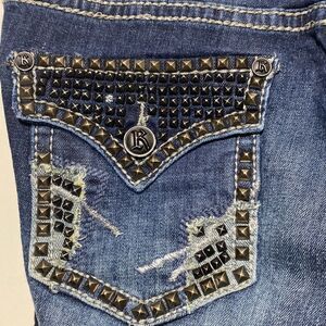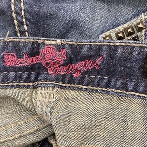 Rock and Roll Cowgirl Women's Blue Embellished Low Rise Jeans Size 33X34