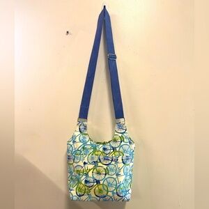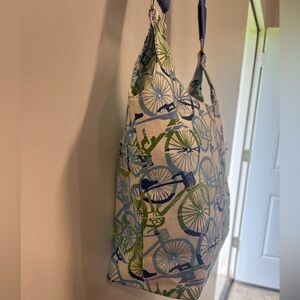 Rock flower paper Bicycle Hobo Crossbody Bag Cotton Canvas 13”x10”x5” Medium