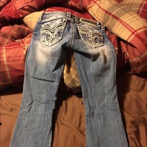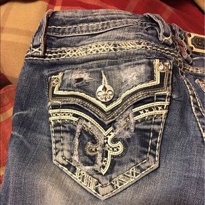Medium wash cute rock revival jeans. Worn a hand full of times. Very good condition, no rips, and the bottoms are perfect condition.