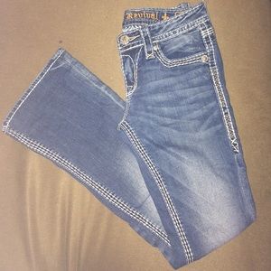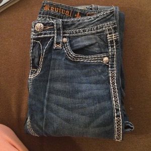 Has peach stitching. They are hemmed to a 30 inch inseam. You can take them to any Buckle to take the hem out for free. The original inseam is a 32 inches. Can go to any buckle to take out hem or I can have it taken out before I send them to you, Won't be able to tell. 🚫No Trades