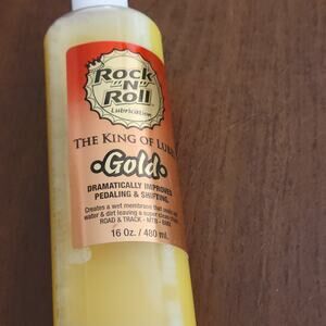 Rock-N-Roll Gold Bike Chain Lube - 16oz, Drip 90% full. Pre-owned, 90% Full, see the photos. Made in USA. UPC 851880001065. Weight 14oz plus shipping materials.