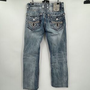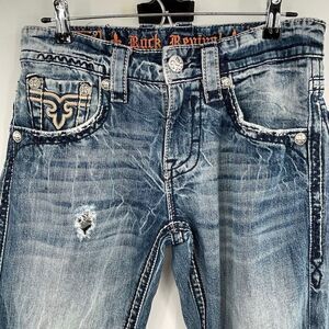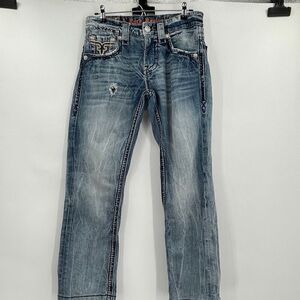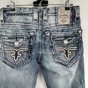 Rock Republic Blue Mid Rise Liberty Boot Cut Studded Denim Jeans Size 29