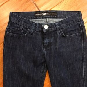 This is a pair of Rock and Republic Limited Edition Recession Collection denim jeans size 26. They are straight leg and are more of a structured denim with little stretch. Excellent Condition, beautiful shade of blue. Classic denim style. There is a Gold charm on the back with the R&R logo.