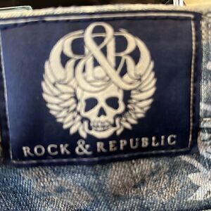 Rock & Republic Skull & Flowers Denim Shorts