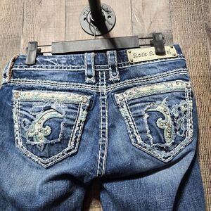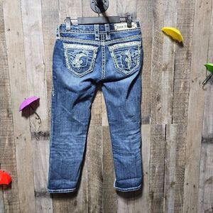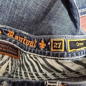 Rock Revival Nancy Crop Patch Ripped Embellished Straight Leg Jeans