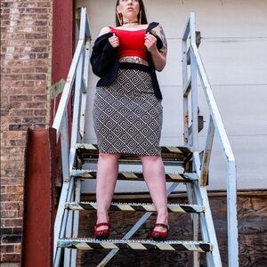 Retro inspired pencil skirt with a great 4 way stretch. zipper at center back.