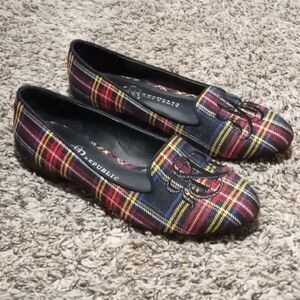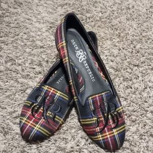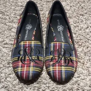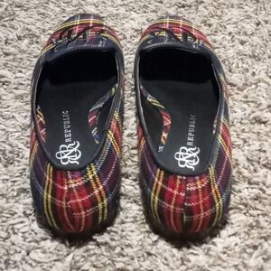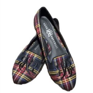 Rock and Republic Red Plaid Embroided Logo Flats Size 5.5