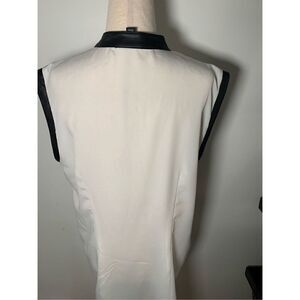 Beautiful sleeveless shirt with leather trim. Not real leather but faux leather