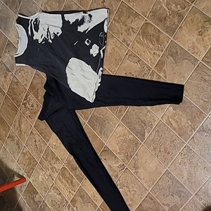 Distressed Punk Rocker Locking Outfit! The top has the image of a David Bowei-esque Rocker. And the spandex-sheen leggings could be worn to a Joan Jett or Bon Jovi concert!