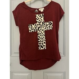 Rocker Girl Juniors Burgundy Animal Print Short Sleeve Cross T Shirt Tee M (7-9)