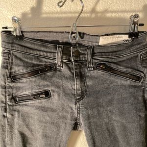 Genuinely love these pants. They definitely have some wear on them. The knees are ripped more than they started, but if you’re going for a fun rocker look, then it works. They’re mid rise and not super tight. They have zipper by the ankle and in the front. Love love love these.