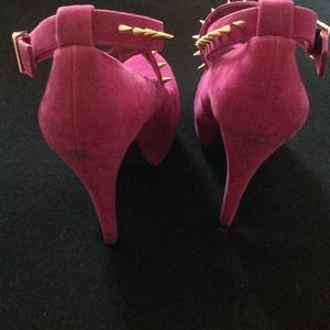 Rock out with these fuchsia pumps that are accented with gold studs.