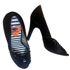 Rocket Dog Black Peep Toe Heels with Bead Detail