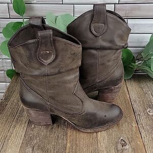 Stylish brown ankle boots by Rocket Dog. Features a slouchy design with pull tabs. Perfect for casual wear.