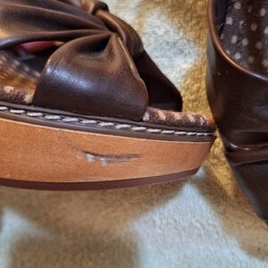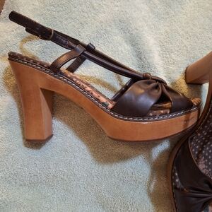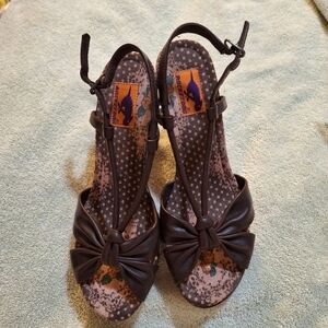 Rocket Dog Brown Bow Block Heels Open Toe Size 8