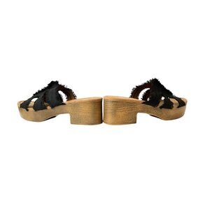 Rocket Dog Clipper Slip On FRAYED Black Platform WOOD BLOCK HEEL Sandals-Women-9