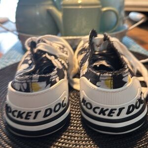 Very good condition! Rocket Dog Daisy Floral sneakers. Women’s size 7.5. Black canvas, lace-up style with white daisies. Barely worn with an adorable frayed look around the opening of the shoe. Classic stripes and bold daisy's add more fun to your staple lace-up sneaker. Show off your flower power and get ready for the compliments with this eye catching women's sneaker..