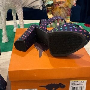 Vibrant polka dot design. Bold platform heel. Perfect for a playful look. Never worn. Just sat in box needs to go to a good home! ;)