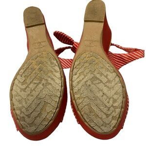 Rocket Dog Red White Striped 4” Wedge Sandals Peep Toe Open Heel Bows