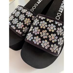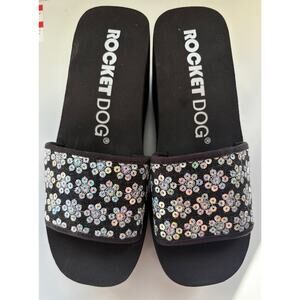 Rocket Dog Sandals Platform Size 8M Black Boom Popstar Sequin Flower Slides Y2K