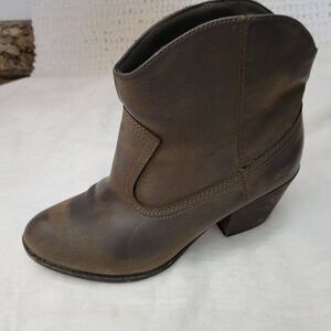 Rocket Dog Size 8 Leather Ankle Boots Booties Brown 2 1/2" heel women's GUC