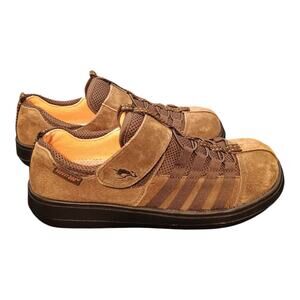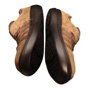 The Rocket Dog Stocker Nubuck Leather Slip On Sneakers in brown, designed for women in size 8.5, are perfect for casual occasions during the winter and fall seasons. These slip-ons feature a round toe shape, lace and logo accents, and a comfortable foam insole. The nubuck fabric upper, rubber outsole, and fabric lining provide a durable and stylish footwear option. With a touch of the iconic Rocketeer character and brand logo, these sneakers offer a trendy and practical choice for everyday wear. New without tags or box please review the photos. Two shipping options for you to choose between.