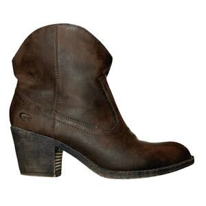 Rocket Dog Sound Off Vintage Worn Western Boots in Brown size 8. Americana Western Style with a vintage vibe. Faux leather uppers with a 2.5 inch faux stacked heel and a rubber sole. Ankle bootie style. Excellent condition!