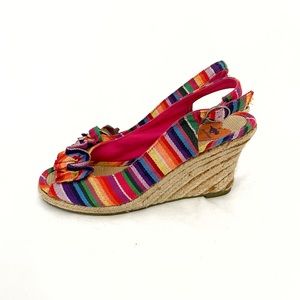 Rocket dog • rainbow stripe wedge espadrilles peep toe slingback ruffle • 7.5