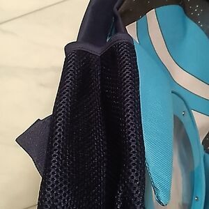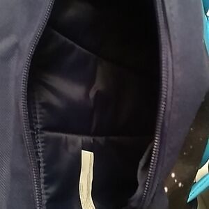Pre-owned in good condition. The backpack is shaped like a rocket.It has a clear round pocket on the front of the backpack. It has two net pockets on the sides. No inside pockets.
