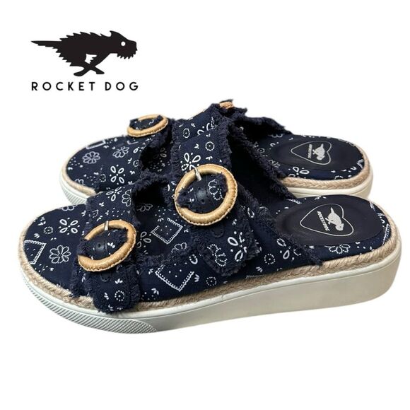 Rocket Dog Women's Favor Bandana Navy Blue Cotton Wedge Platform Sandals 8.5