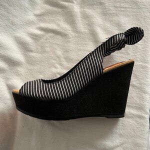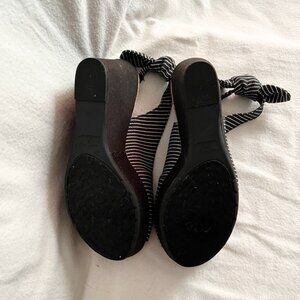 Rocketdog Black/White Stripe Black Denim Wedge Sandals