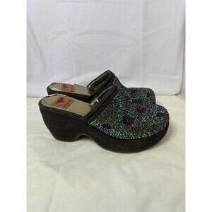 The RocketDog Women's Brown Iridescent Sequined Beaded Platform High Heels in size 9M are stylish and eye-catching shoes perfect for any woman looking to make a statement. Made from faux leather, these platform heels feature intricate beadwork and sequin accents that add a touch of glamour to any outfit. With a high heel height of 3-3.9 inches, these shoes are both fashionable and comfortable, making them a versatile choice for any special occasion or night out. The brown color and platform style add a trendy and chic touch to these must-have heels.