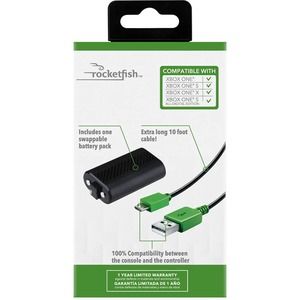 This Rocketfish Play and Charge Kit for Xbox One controllers is designed to accommodate long gaming sessions. The 1200 mAh battery replaces throwaway AA batteries in Xbox One Controllers and charges as you play with the Xbox One Charge Cable. Play while connected and at a distance with the 10-foot connection, or detach and play wirelessly with the reliable battery pack. This set contains everything necessary to compete for countless hours at the highest level.