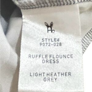 Charming Rockets of Awesome light heather gray girls short sleeve dress with playful ruffle details. Contrast zipper tab in back. Made of a lightweight scuba material. Perfect for any occasion. Like new.