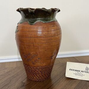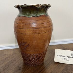 Rockhouse Pottery Hand-Carved Vase Walnut Raleigh Ken Poole Seagrove NC 1992