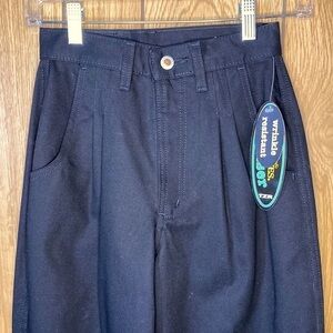 New condition with tags! High waisted pleated TZR trouser style jeans from Rocky Mountain Jeans. Wrinkle resistant heavier weight 100% cotton. Pleated front with two front pockets, “bareback” (no back pockets) styling.