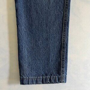 -Details: vintage, made in USA, bareback (no butt pockets), tapered leg, thick with little stretch, small imperfection on front right leg (see last photo) - otherwise in excellent vintage condition