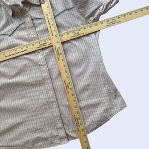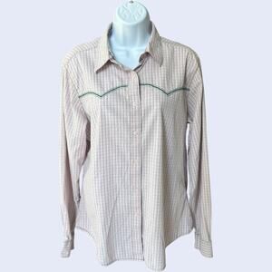 Rockies western piped-yoke button front shirt pink/green micro-check women’s XL