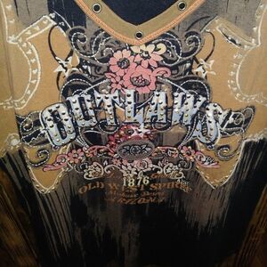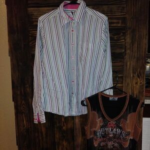 Lot of 2 western cowgirl shirts. (1) Rockies long sleeve size large. Measurements are: armpit to armpit is 22", top of shirt to bottom is 24" long and sleeve length is 25.5". (1) Vanilla Sugar sleeveless top in medium. Measurements are: armpit to armpit is 17" across (without stretching) and from top of shoulder to bottom of shirt is 22" long.