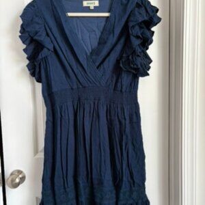 Rockin' C Women's Navy Swiss Dot V-Neck Short Flutter Sleeve Dress